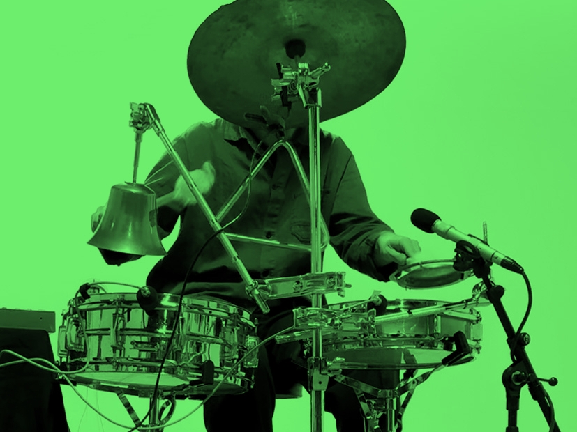 Shakeeb Abu Hamdan est un musicien et artiste visuel libano-britannique basé à Paris. Dans ses solos, il utilise un set composé d’une batterie, de cloches et de cymbales, qu’il augmente et amplifie avec des transducteurs de surface, des microphones, des effets de modulation, des mégaphones modifiés et d’autres dispositifs électroniques. Ses performances laissent place aux accidents génératifs et à l’improvisation, en réponse aux instabilités du feedback et aux interactions imprévisibles intégrées dans son dispositif instrumental.