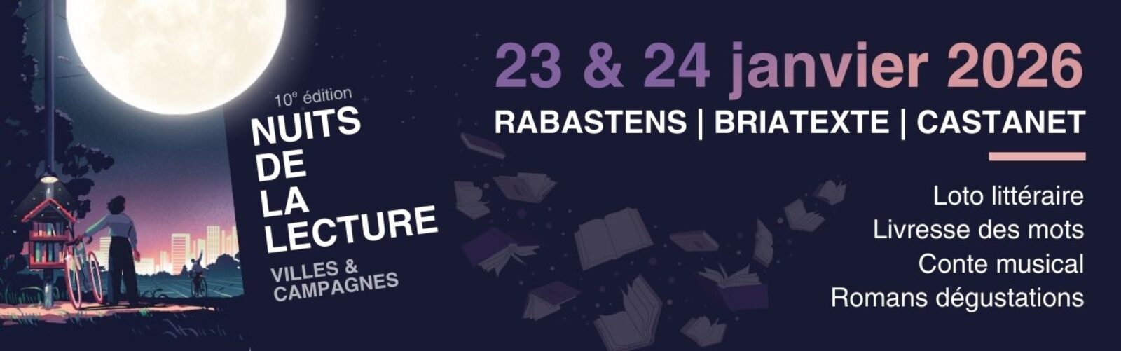 Pour l’occasion, les médiathèques de Rabastens, Briatexte et Castanet ouvriront exceptionnellement en soirée les vendredi 23 et samedi 24 janvier 2026, afin de vous permettre de profiter pleinement des rendez-vous des Nuits de la lecture.