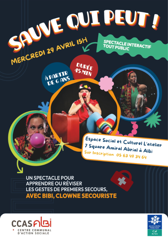 « Sauve qui peut » est un spectacle pensé pour les petits et grands. A travers le personnage de « Bibi le Clown », Émilie Caminade met en scène les gestes de premiers secours de manière ludique et amusante. Un spectacle divertissant et pédagogique, pour apprendre tout en s’amusant.
